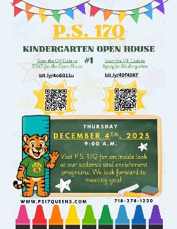 Visit P.S. 17Q for an inside look at our academic and enrichment programs. We look forward to meeting you! Please be sure to RSPV as space is limited.